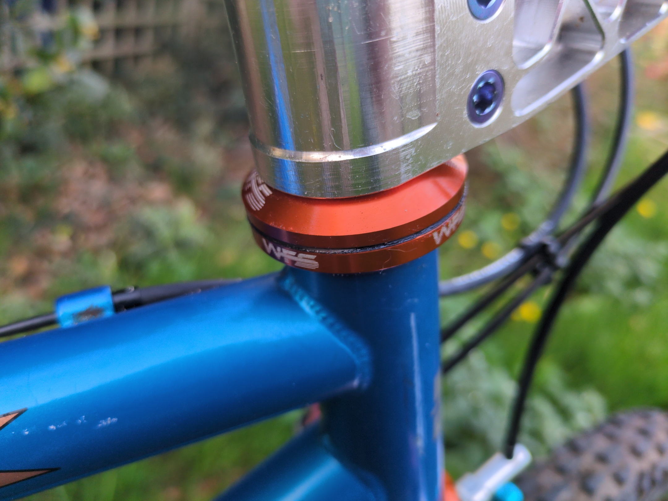 This bike has a 1" threadless headset, and those are hard to come by. I'd have liked to have a Chris King, but 1" threadless Chris King headsets exist only in theory and are never actually in stock anywhere. WFS was the only one of the others which I could get in a blingy colour in 1" threadless.