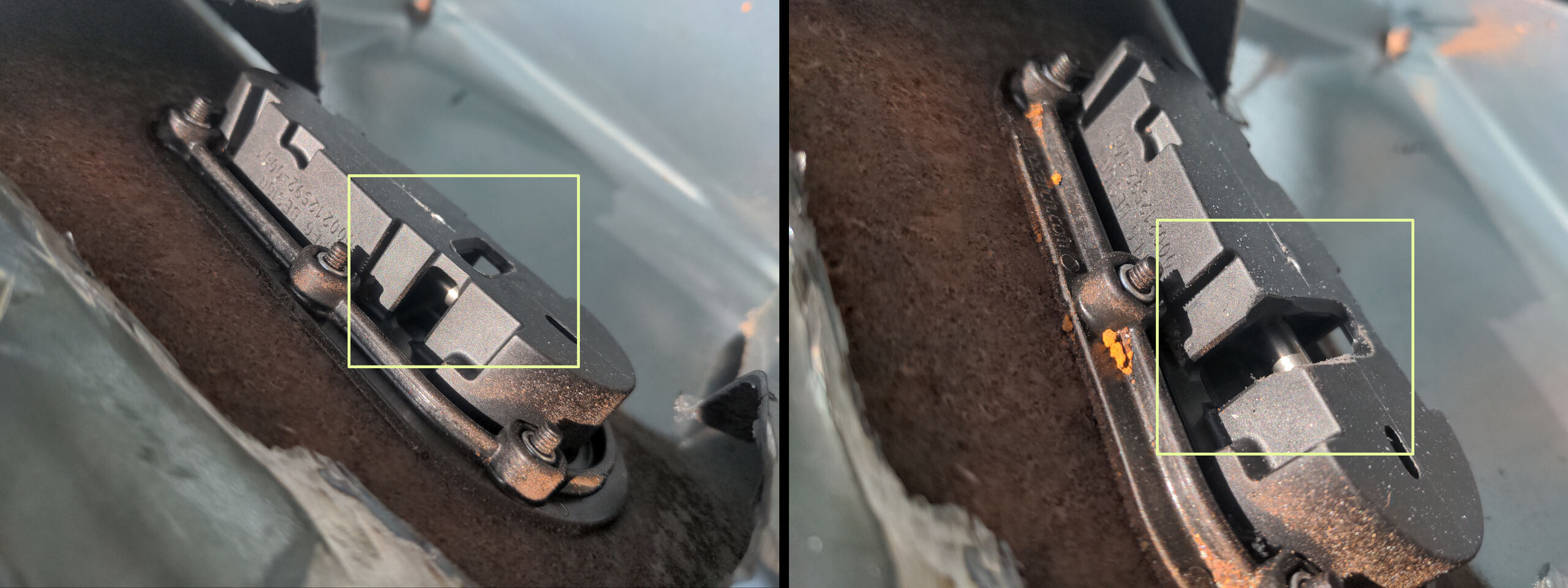 And if you were wondering how any single assembly could attach to captive bolts at right angles to each other, the answer is slots.