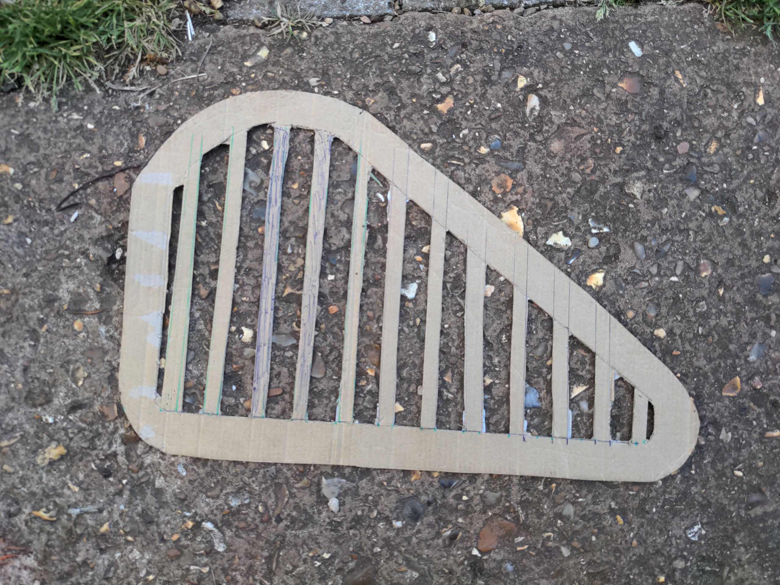 Of course I'm not just going to have holes there. I had a design for a vent in my head, but to validate it I made a crude version of it from cardboard...
