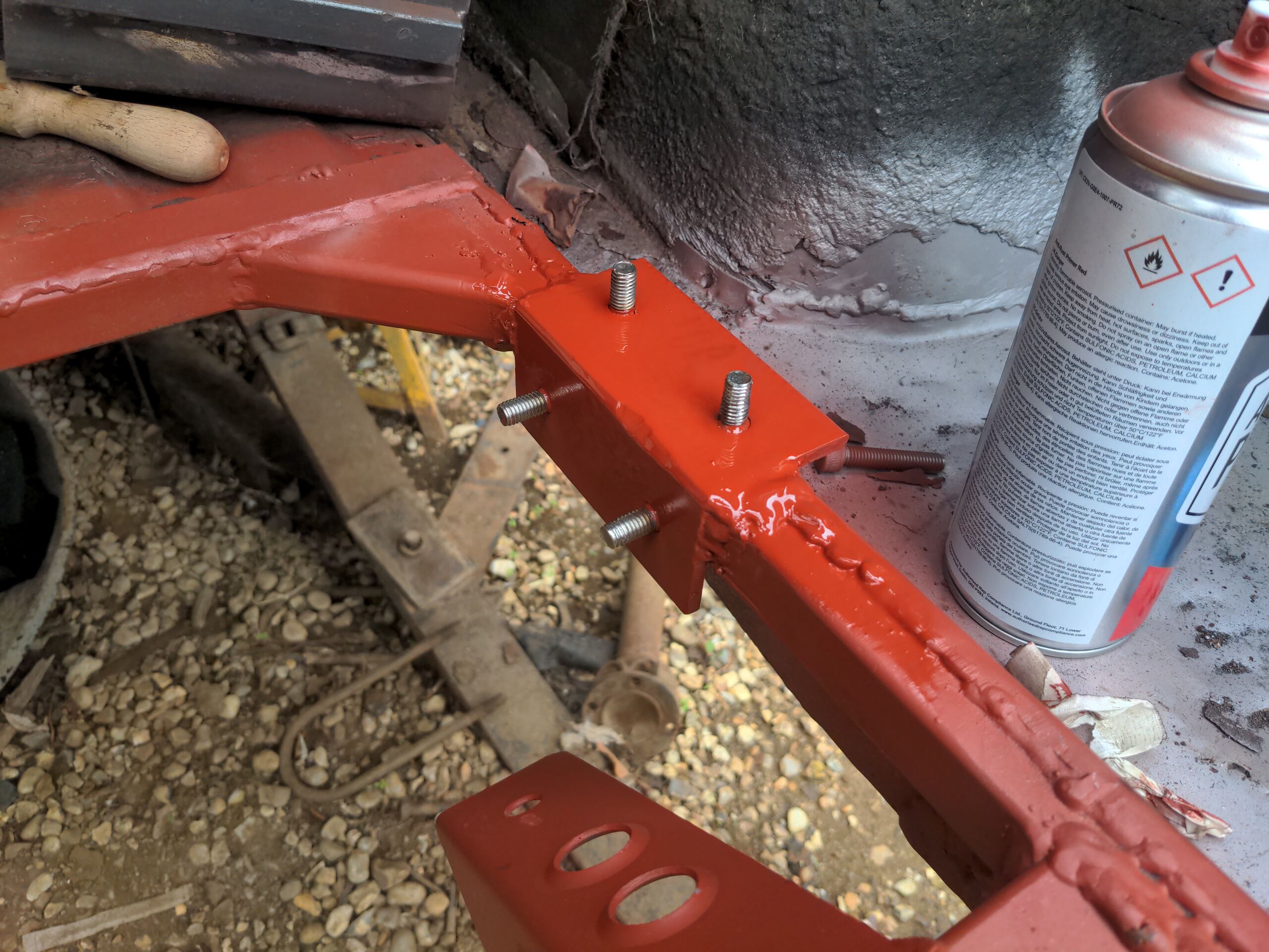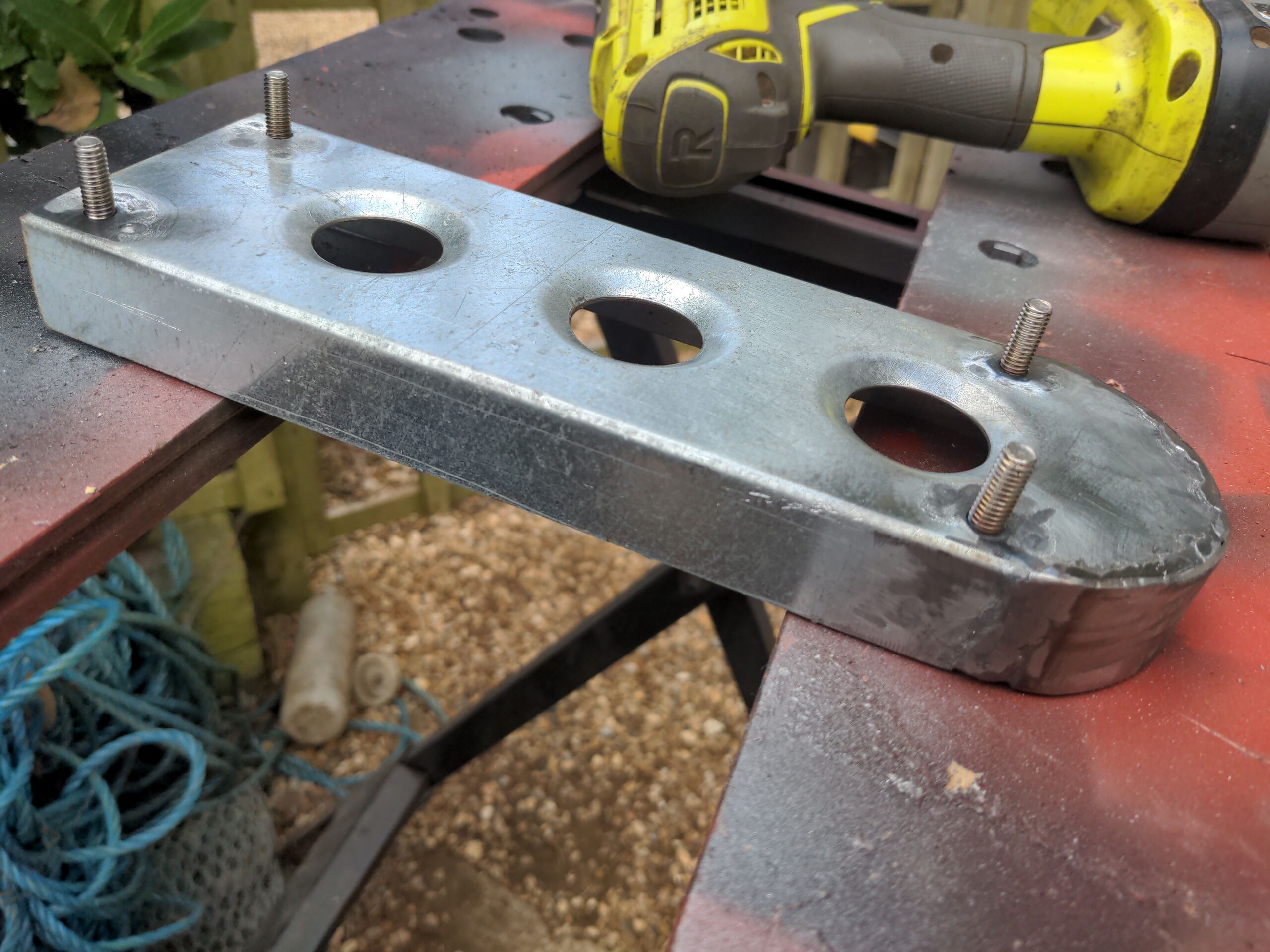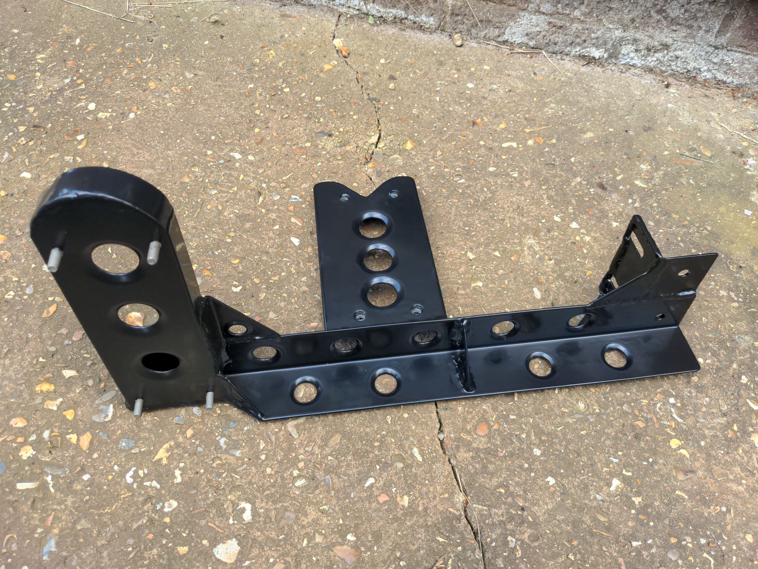 I was happy with that, so that meant I could commit to it. I wanted this bracket to be removable. Making it removable means having somewhere for it to bolt to, and that is a massive thick piece of angle iron with four captive bolts welded into it.
