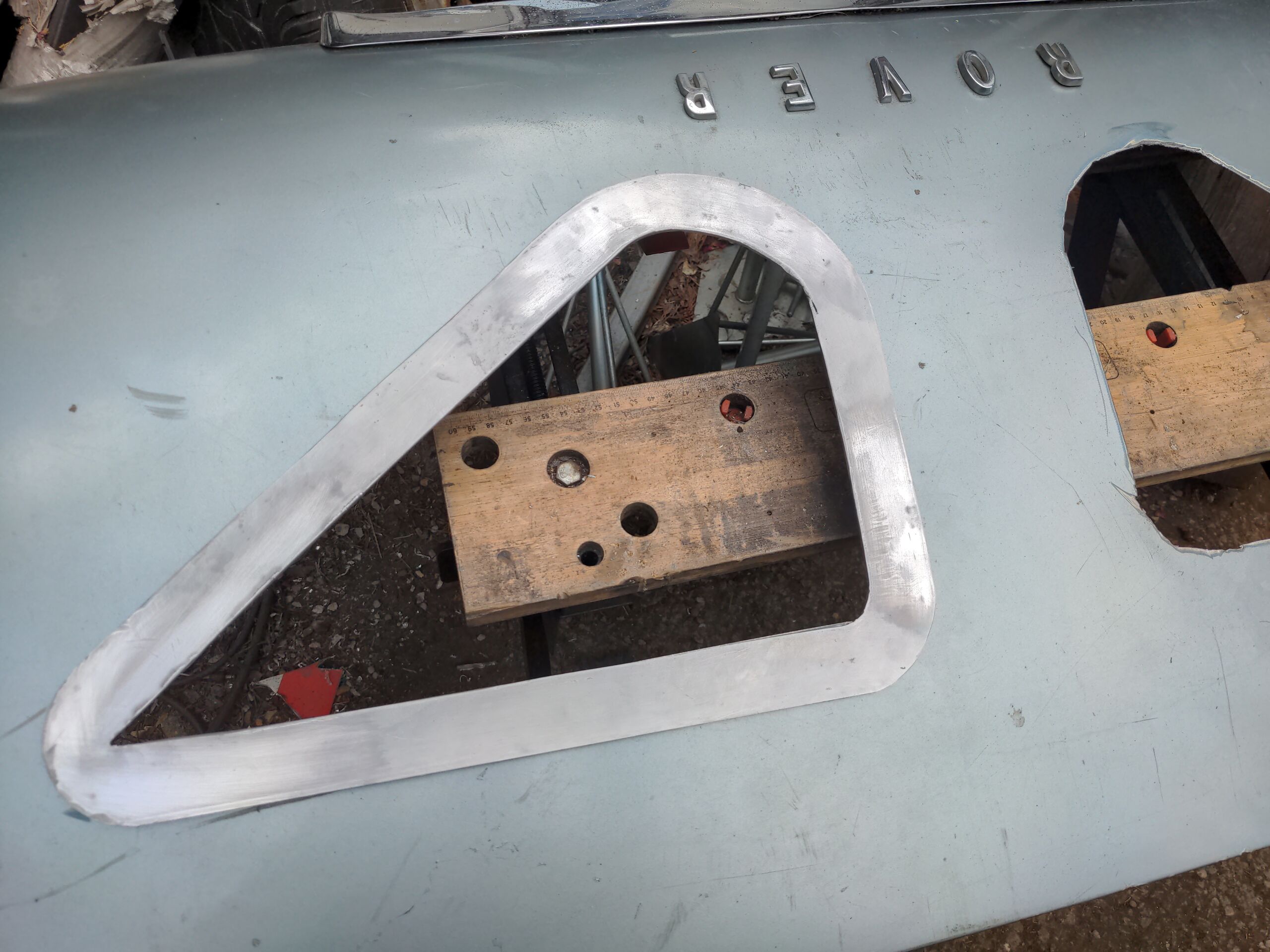 There are no vents available off the shelf that would look right on this car, and which would conform to its curves. That meant I had to make some. Making them myself gave me total freedom to decide on their size and shape, so here's a perfectly good classic car panel with some massive holes cut into it.