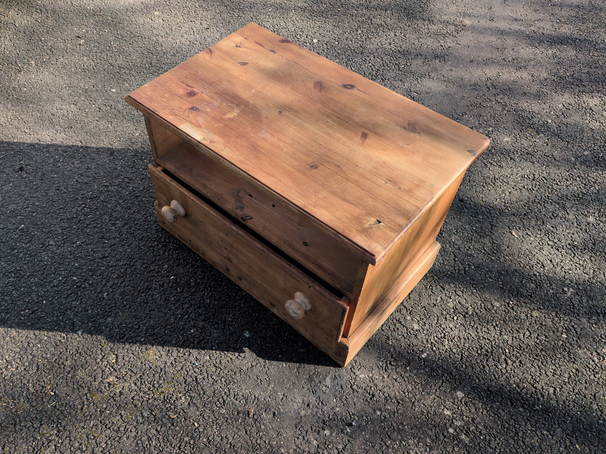 When she got bored with that (this took about twenty minutes) I gave it a clean, a few tiny bits of filler, then a dark stain and an oiling. It looks good enough.